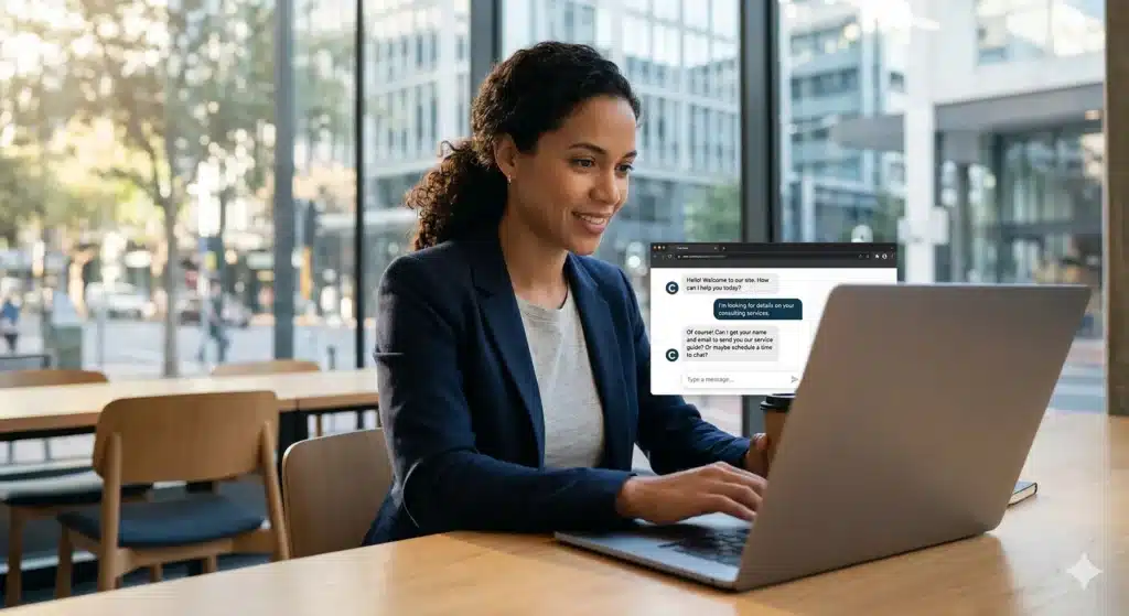 An AI chatbot is a virtual assistant that interacts with visitors on your website in real time. It can answer questions, provide service information, collect lead details, and schedule appointments automatically.