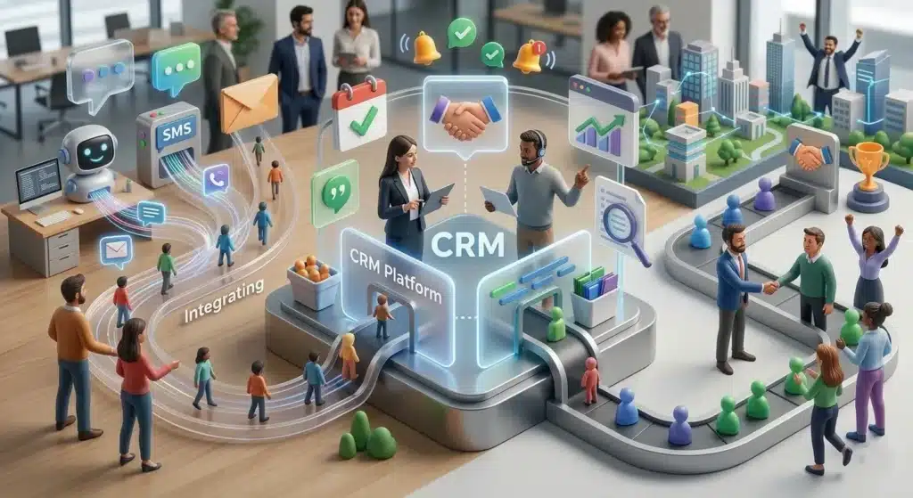 We integrate your AI chatbot, voice receptionist, and messaging channels with your customer relationship management system so every lead is automatically captured and organized.